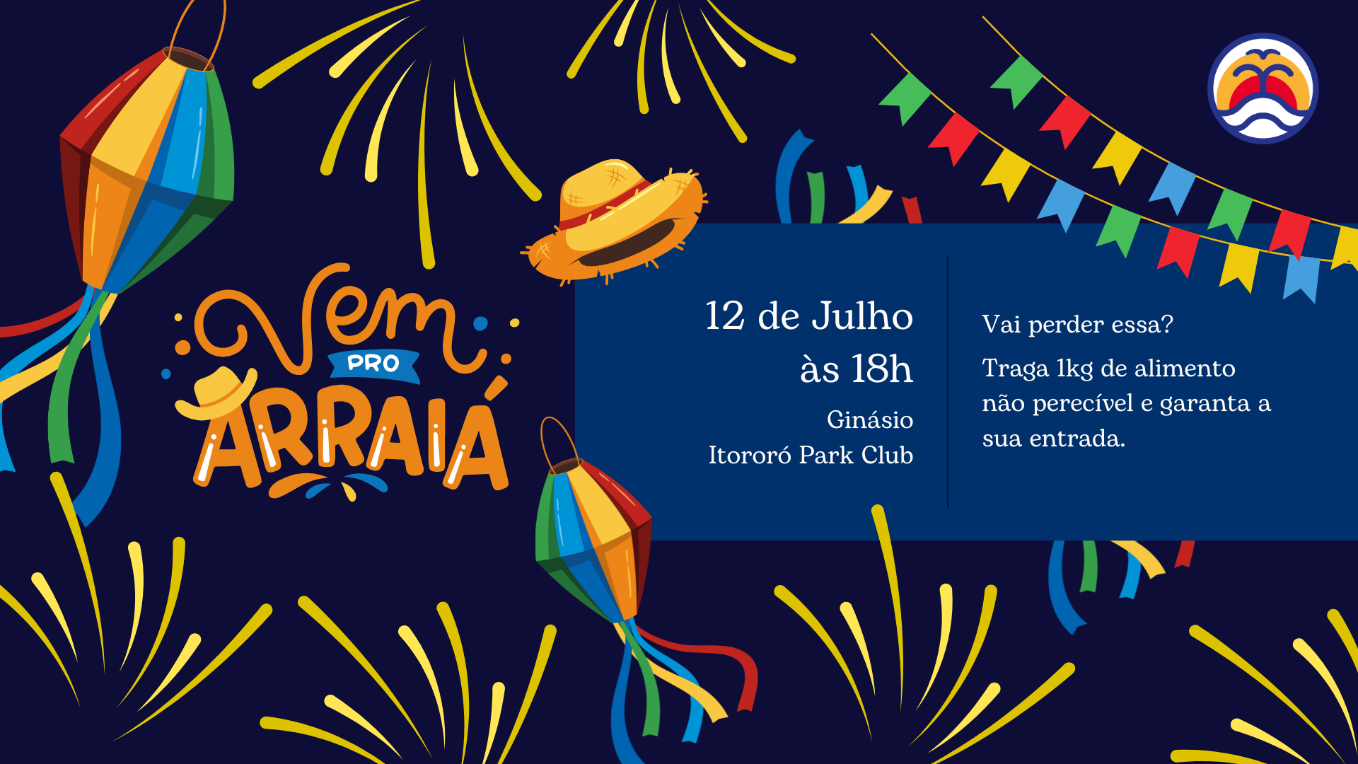 Traga toda a família para o nosso grande arraiá no Itororó Park Club!